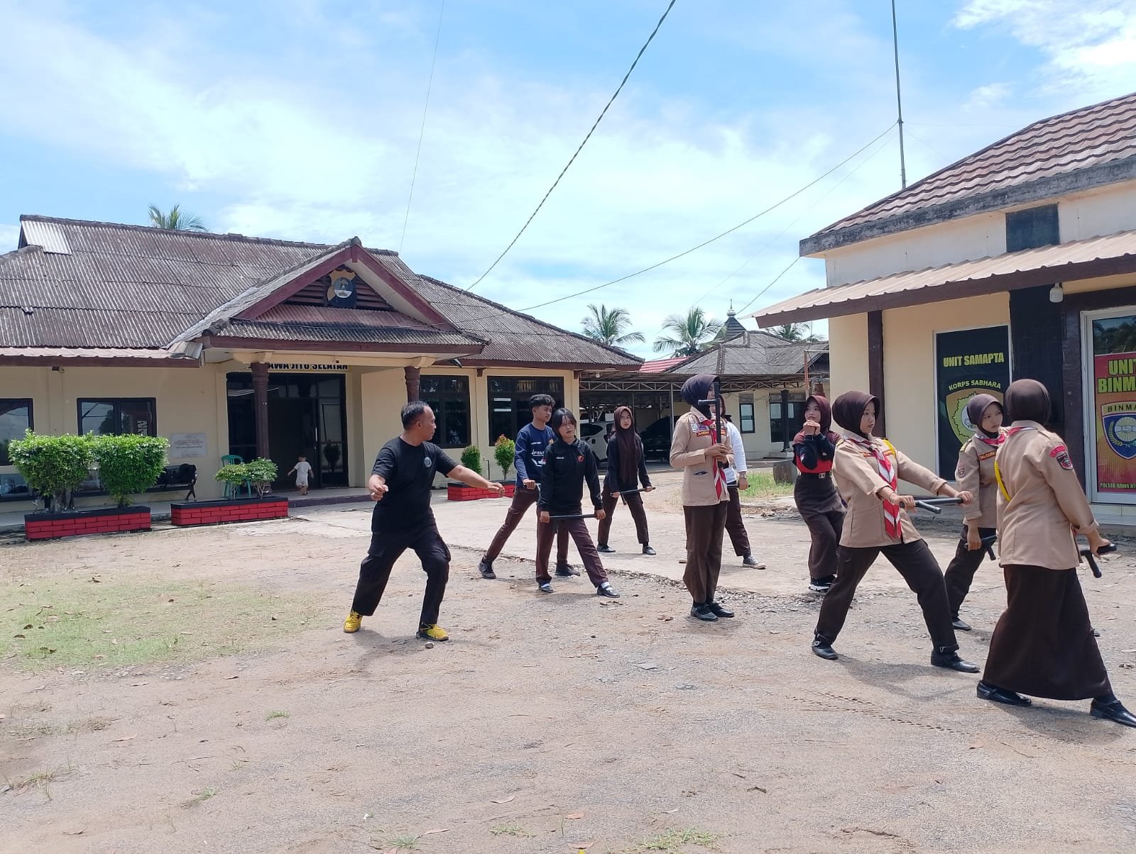 Kegiatan yang berlangsung di Mako Polsek Rawa Jitu Selatan ini dipimpin langsung oleh Ps. Kanit Binmas Polsek Rawa Jitu Selatan, Aiptu Wahidin, didampingi oleh Ps. Kanit Bintibsos Sat Binmas Polres Tulang Bawang, Aipda Fajar Nuriman. Antusiasme terlihat jelas dari 15 orang peserta yang mengikuti seluruh rangkaian latihan dengan penuh kedisiplinan.