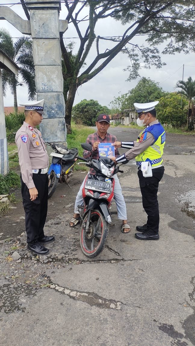 Tak hanya itu, personel Sat Lantas juga membagikan leaflet imbauan keselamatan berlalu lintas sebagai upaya meningkatkan kesadaran masyarakat akan pentingnya disiplin di jalan raya.