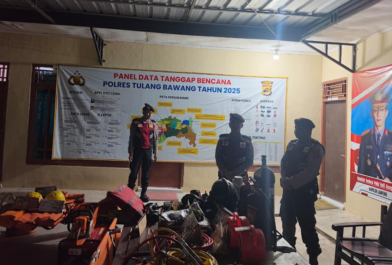 Aktharjayamedia.com–Tulang Bawang – Sebagai wujud nyata kehadiran Polri di tengah masyarakat, Satuan Samapta Polres Tulang Bawang menggelar Piket Posko Tanggap Darurat Bencana Hidrometeorologi yang berlangsung di Mako Polres Tulang Bawang, Kamis malam (15/01/2026).
