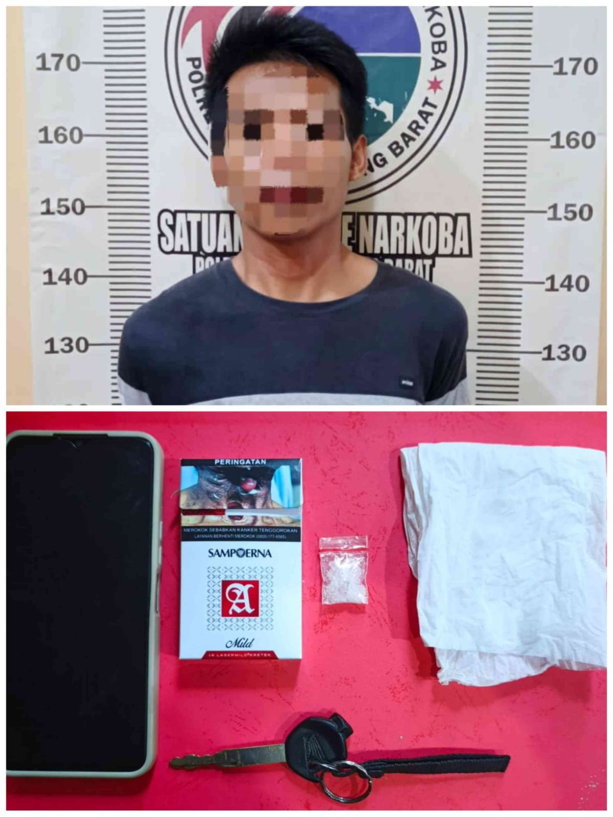 Lebih lanjut ungkap AKP Samsi, saat dilakukan penangkapan personil berhasil mengamankan barang bukti 1 (satu) bungkus plastik klip sedang berisi kristal-kristal putih diduga narkotika jenis sabu, 1 (satu) buah kotak rokok merk sampoerna mild, 1 (satu) lembar tisu, 1 (satu) unit sepeda motor merk honda genio warna biru tanpa nopol dan 1 (satu) unit handphone merk vivo y22 warna hitam.